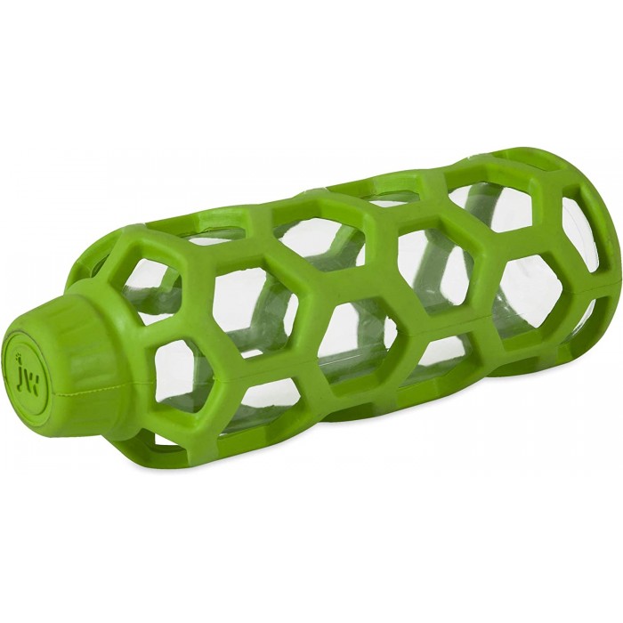 Based on the JW best selling dog toy, Hol-ee Roller, the Hol-ee Water Bottle has the same intriguing, flexible rubber cage design enclosing an empty water bottle for extra stimulation. Alternatively remove the bottle and fill the cage with large treats to make a treat dispensing toy.