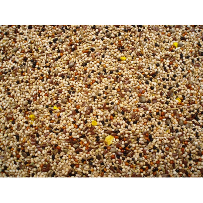 Our Aviary Mixture is designed for mixed collections of smaller birds including finches, canaries, budgies, cockatiels, small parakeets and small conures. Mixed aviaries with parakeets may also like our Small Parakeet mixture which contains some larger seeds and a small amount of sunflower seed.