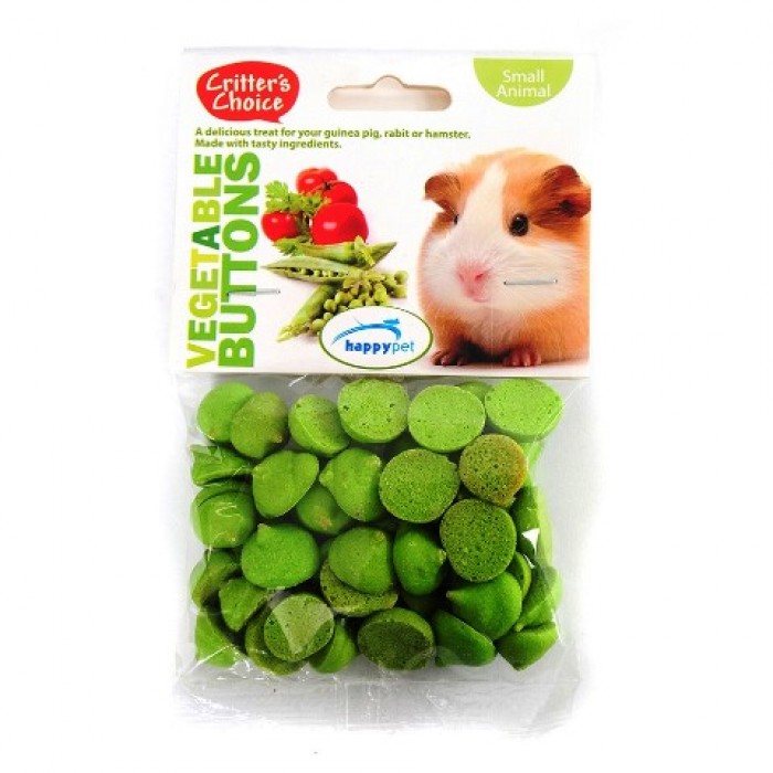 Vegetable Buttons are small, crunchy honeycomb biscuits suitable for use as a treat or reward for small pets.